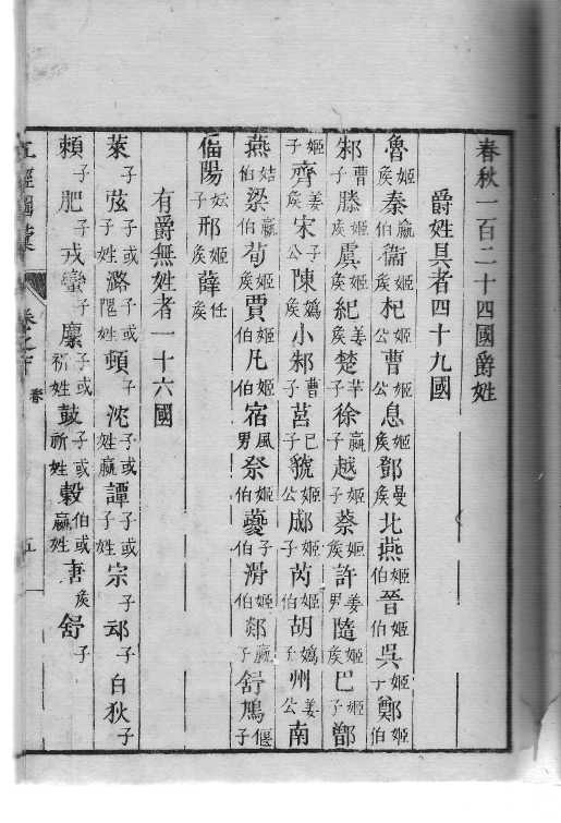 - 春秋一百二十四國爵姓,爵姓具者四十九國,有爵無姓者一十六國